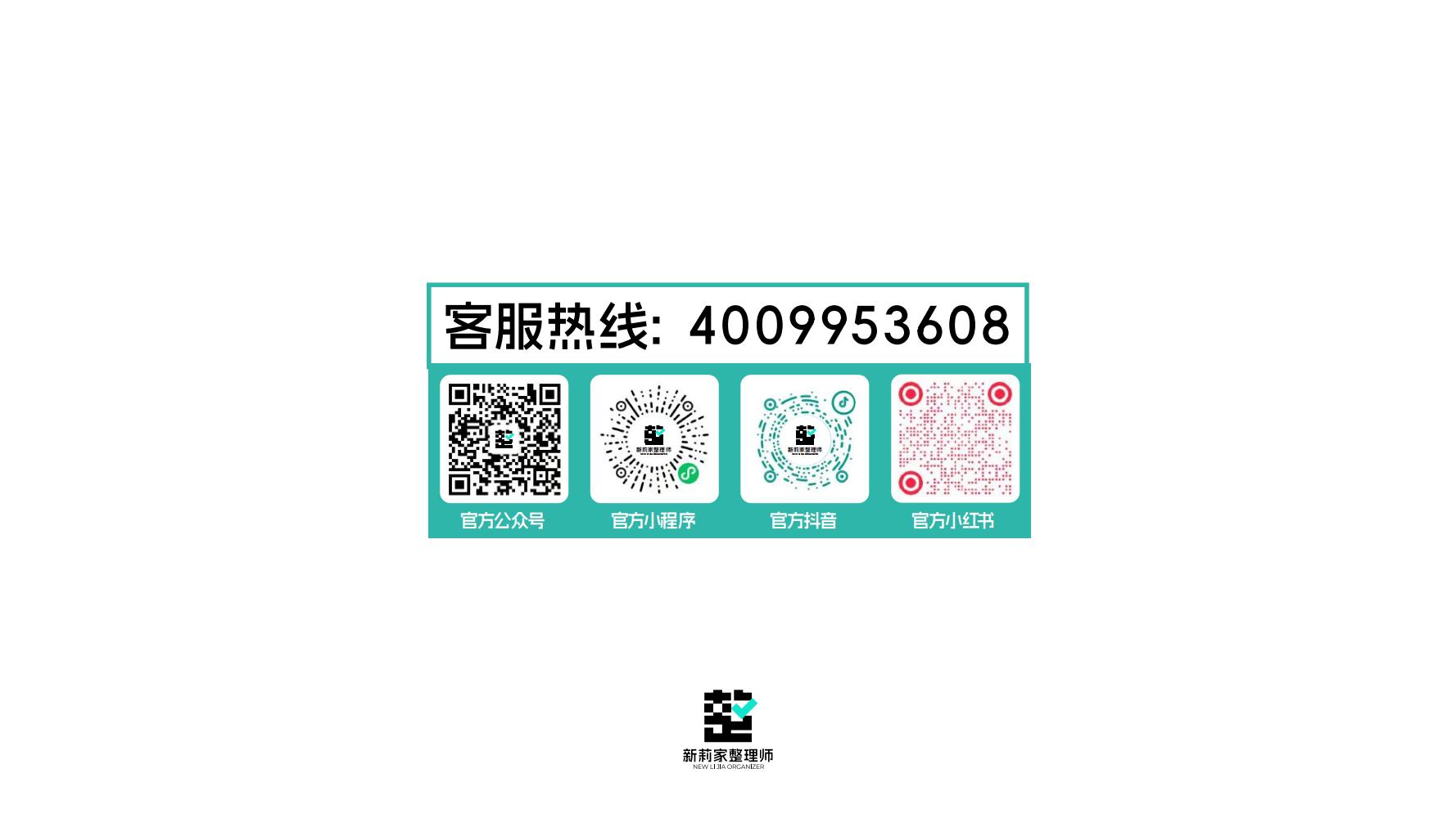 新莉家自2018年起专注国内整理收纳行业。新莉家为中国家庭/企业用户提供专业的空间规划、收纳设计、上门整理收纳、一站式搬家服务、亲子整理指导、办公整理、企业定制服务等高品质生活服务,致力于成为知名的家...
